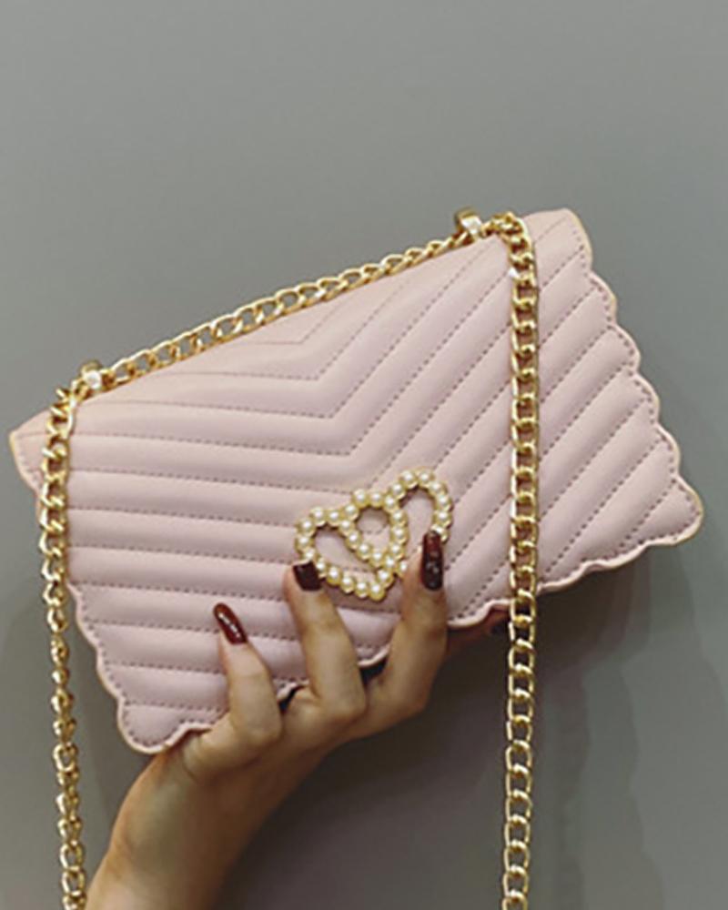 Double Heart Pattern Chevron Chain Bag, Pink