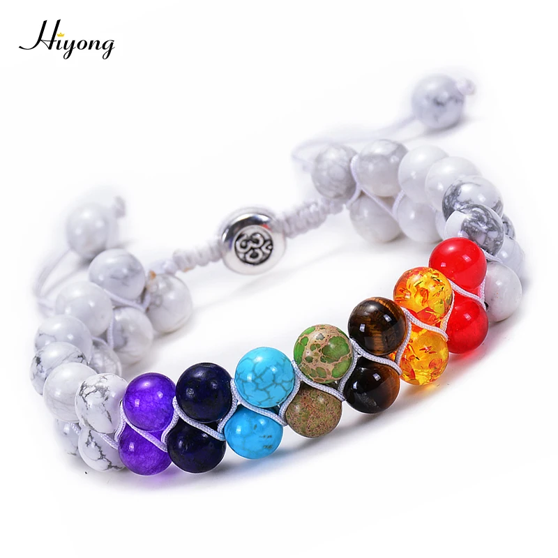 Double Layer Natural Healing Stone Bracelet White Howlite Turquoises Yoga Beads Bracelets Adjustable Braided Rope for Couples