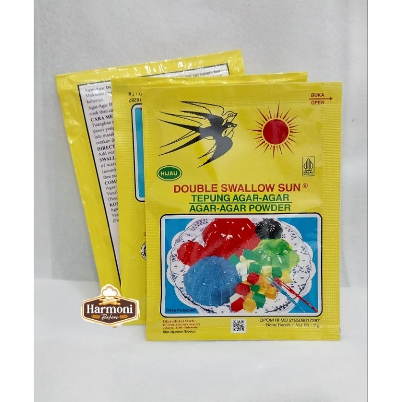 Tepung Agar-Agar Double Swallow Sun 7 Gram PT Bola Dunia Wallet Halal MUI & BPOM Enak. Tepung agar-agar berserat tinggi diolah dari sari rumput laut asli.