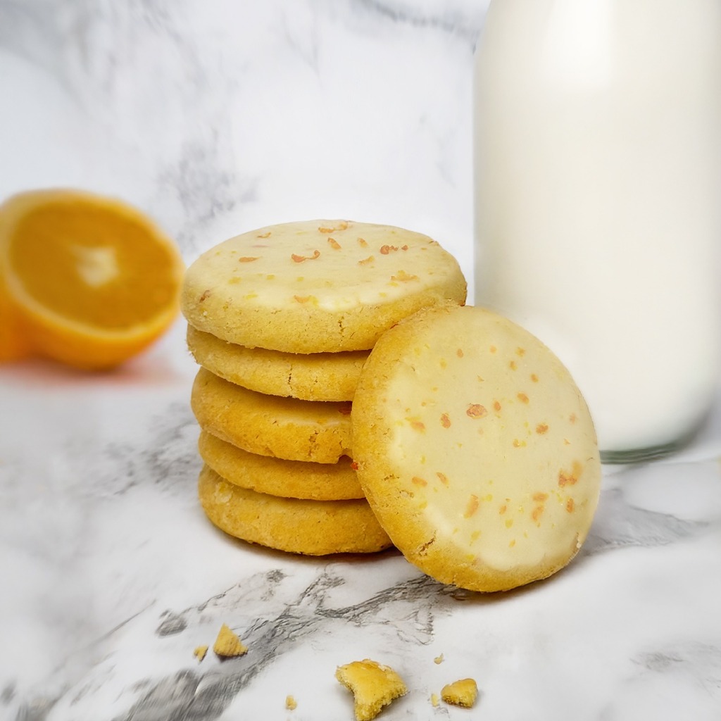 Soft orange sugar cookie topped with orange frost and fresh orange zest