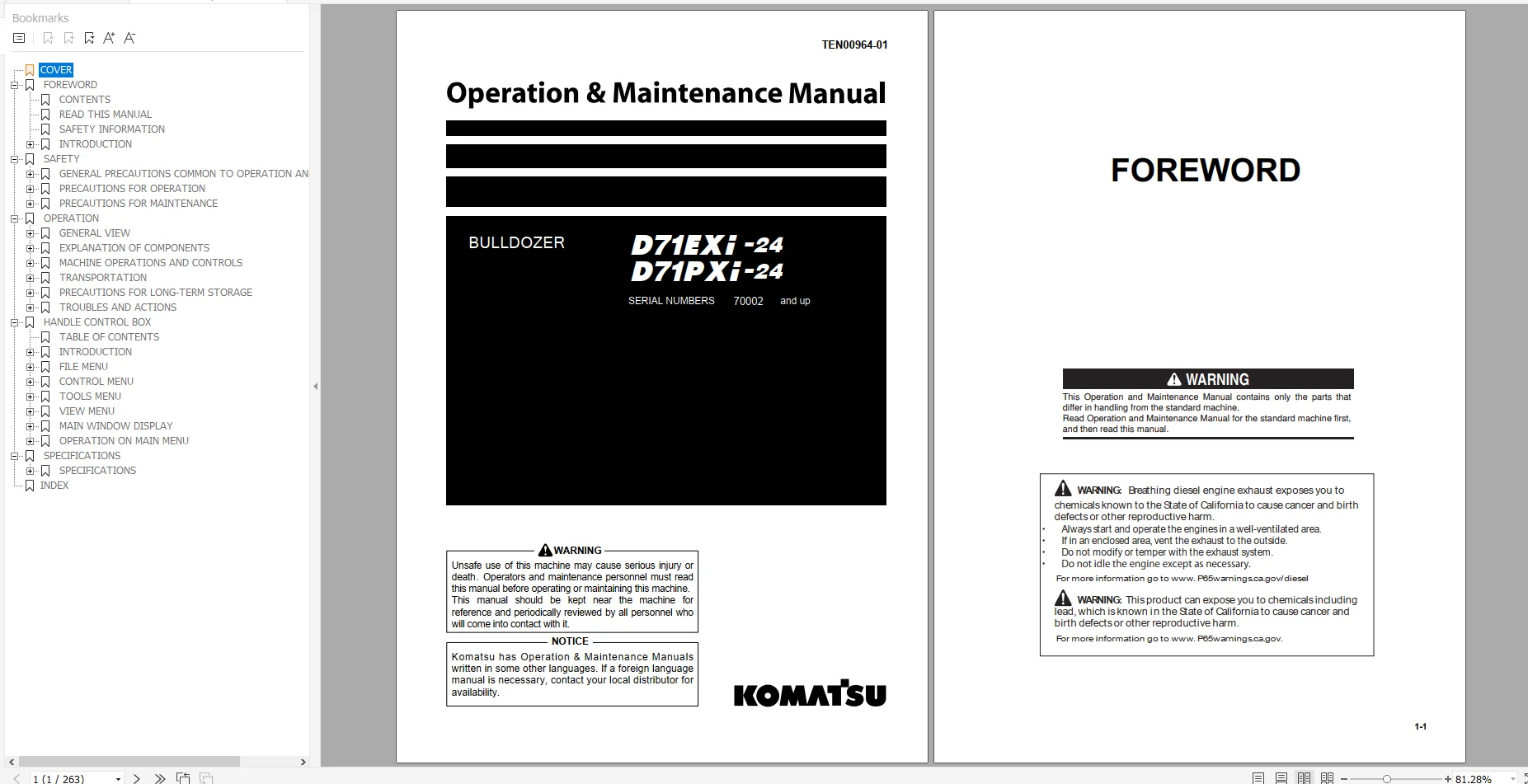 Dozers Komatsu 2022, 3,07 ГБ, руководство в PDF магазине, техобслуживание оператора и схема
