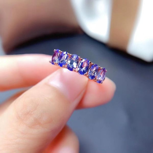 natural tanzanite ring, s925 sterling silver rose gold lady's natural blue gemstone ringladies simple ring j0112, Slivery;golden