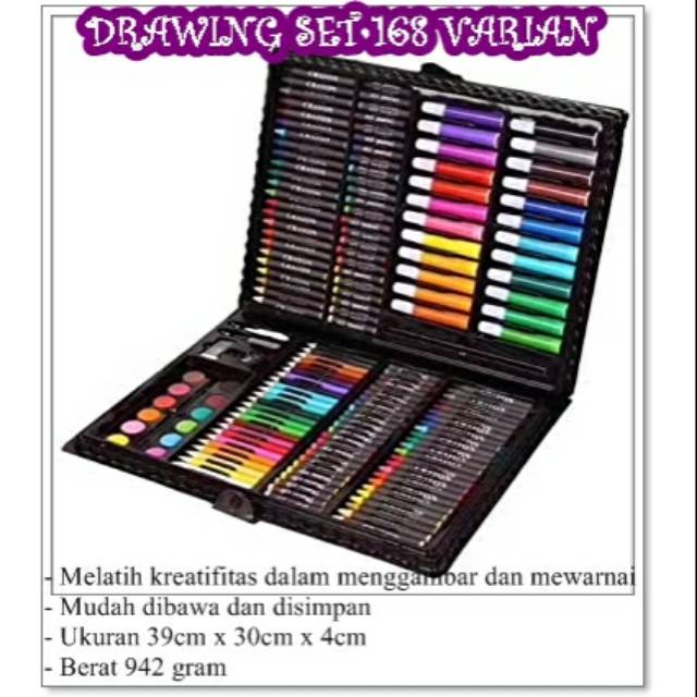 Drawing Set berisi 168 perlengkapan, sangat cocok untuk anak-anak dan Anda yang kreatif dalam menggambar dan mewarnai.