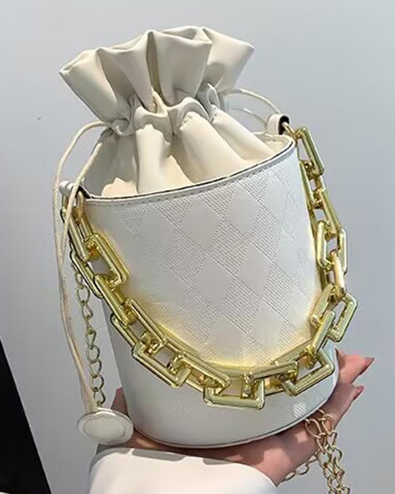 Drawstring Chain Strap Bucket Bag, White