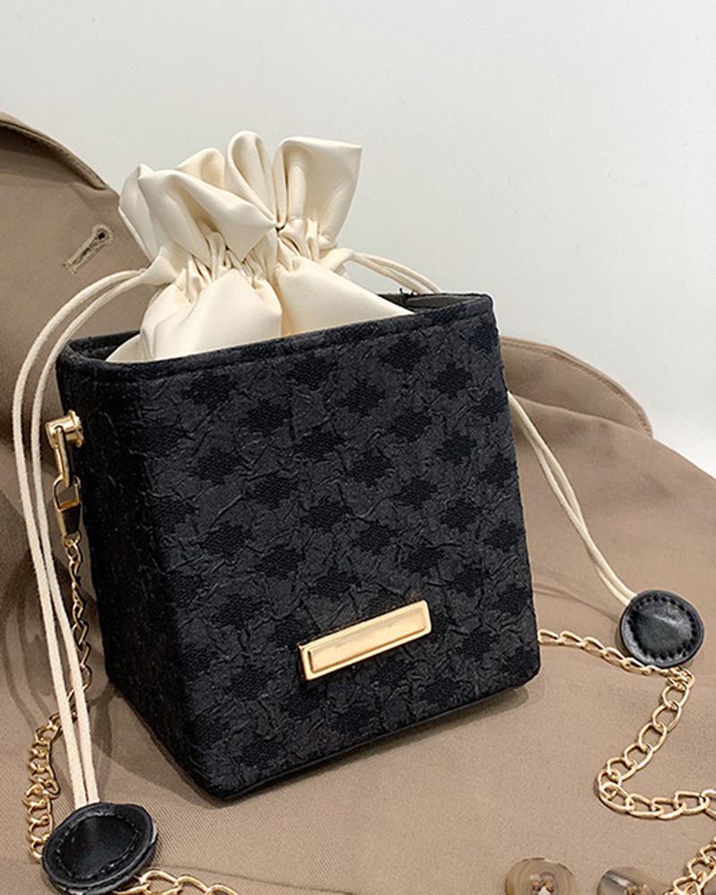 Drawstring Chain Strap Trendy Bucket Bag, Black