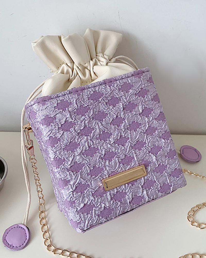 Drawstring Chain Strap Trendy Bucket Bag, Purple