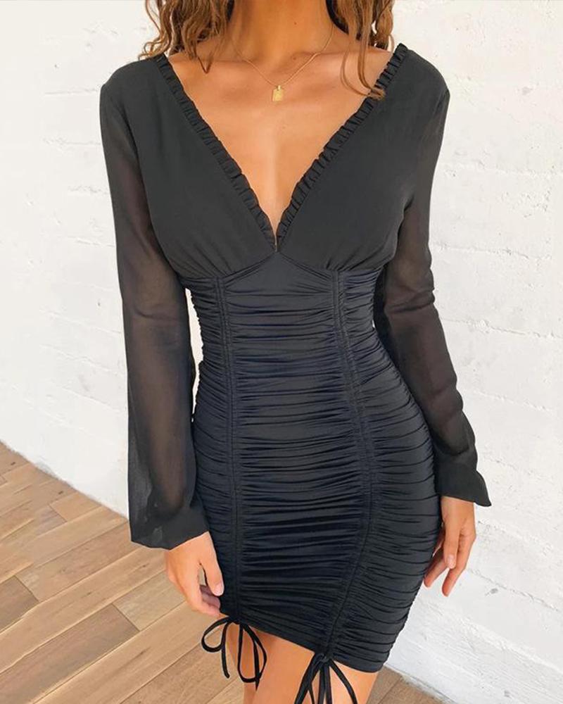 Drawstring Design Ruched Bodycon Dress, Black