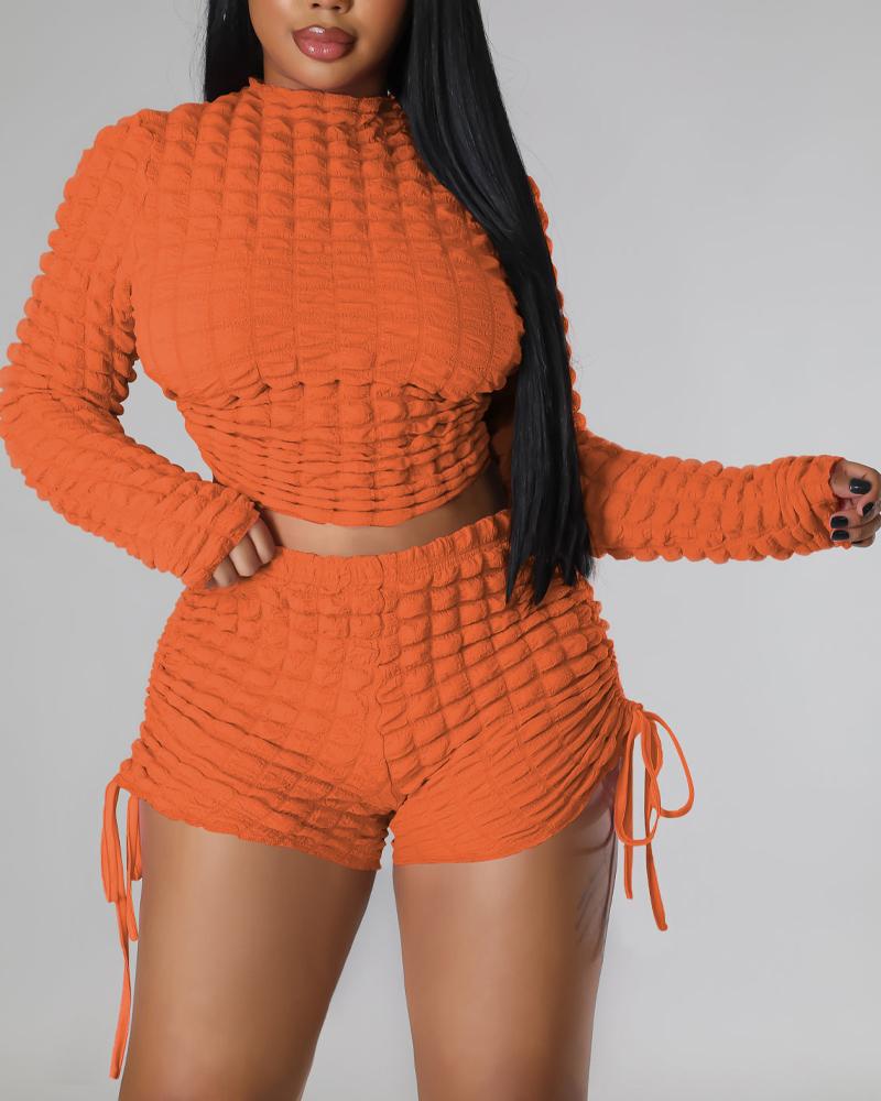 Drawstring Ruched Backless Crop Top & Shorts Set, Orange