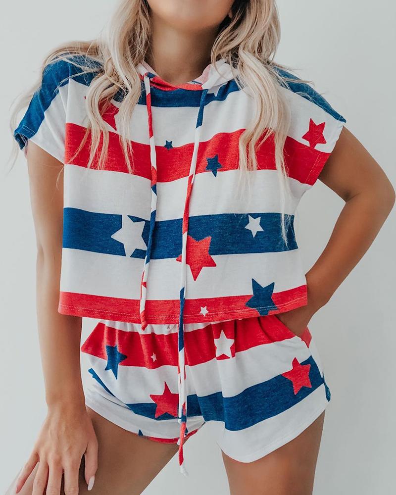 Drawstring Star Color Block Two-Piece Set, Blue&red