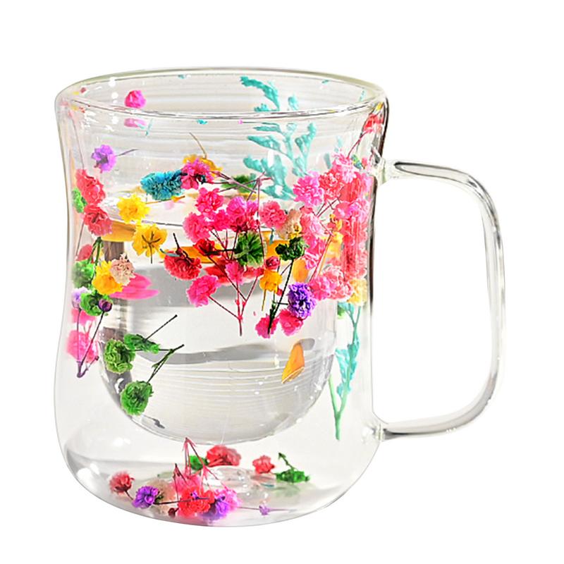 Dried Flowers Cups Double Wall Espresso Cups 370ml Clear Heat Resistant Glass Mug With Dried Flowers Design Double Wall For 400ml