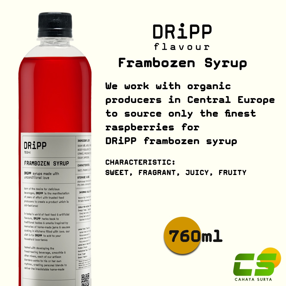 kami bekerja dengan produsen organik di Eropa Tengah hanya untuk sumber raspberry terbaik untuk sirup frambozen DRiPP