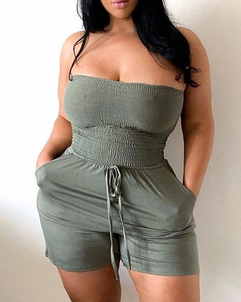 Dual Pocket Bandeau Drawstring Rompers, Green