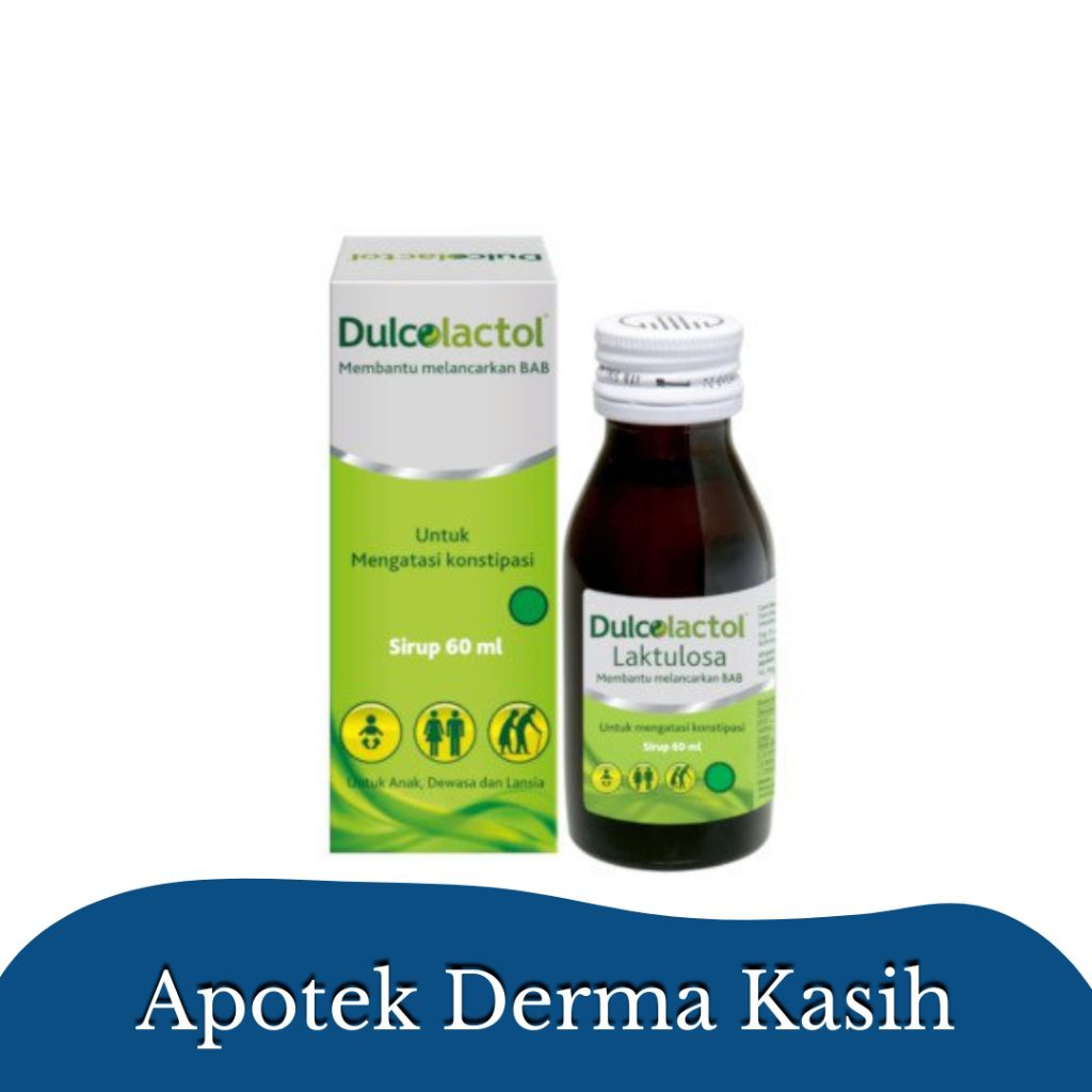 Dulcolactol mengandung Laktulosa yang bekerja menaikkan tekanan osmosa dan suasana asam sehingga feses menjadi lunak.