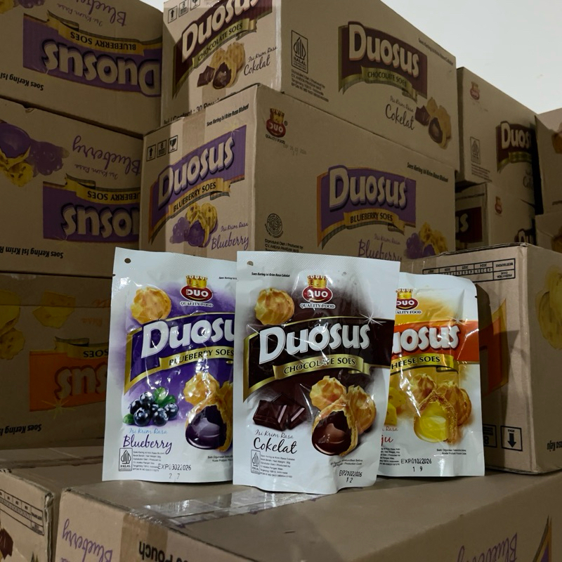 Duosus snack soes dengan berbagai macam rasa. Ada rasa coklat, keju dan Blubery.
