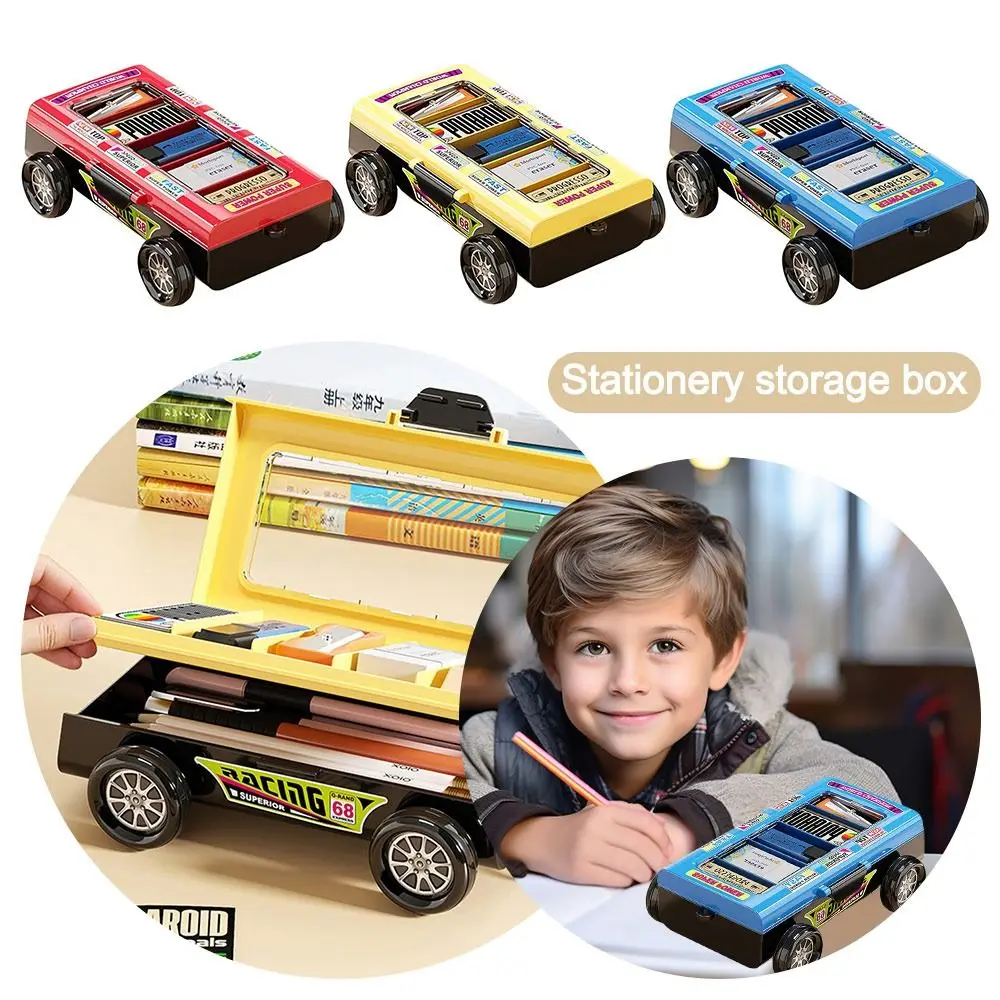 Durable Racing Design Pencil Case Double-layer Multifunctional Pencil Box Large Capacity Case Pencil Bag School Supplies