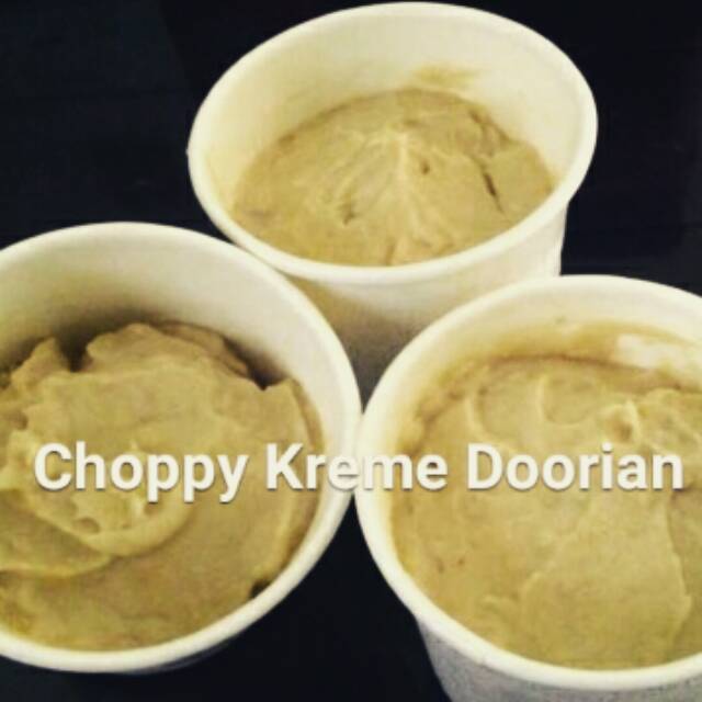 Komposisi dalam cup: 100% daging durian asli Medan. dibekukan didalam freezer, membuat durian Choppy Kreme tetap segar dan awet. Choppy Kreme Doorian mensortir durian kualitas baik dan mempertahankan pilihan durian dengan rasa yang manis, sehingga terasa kreme dilidah. Dijamin nagih dengan sensasinya...