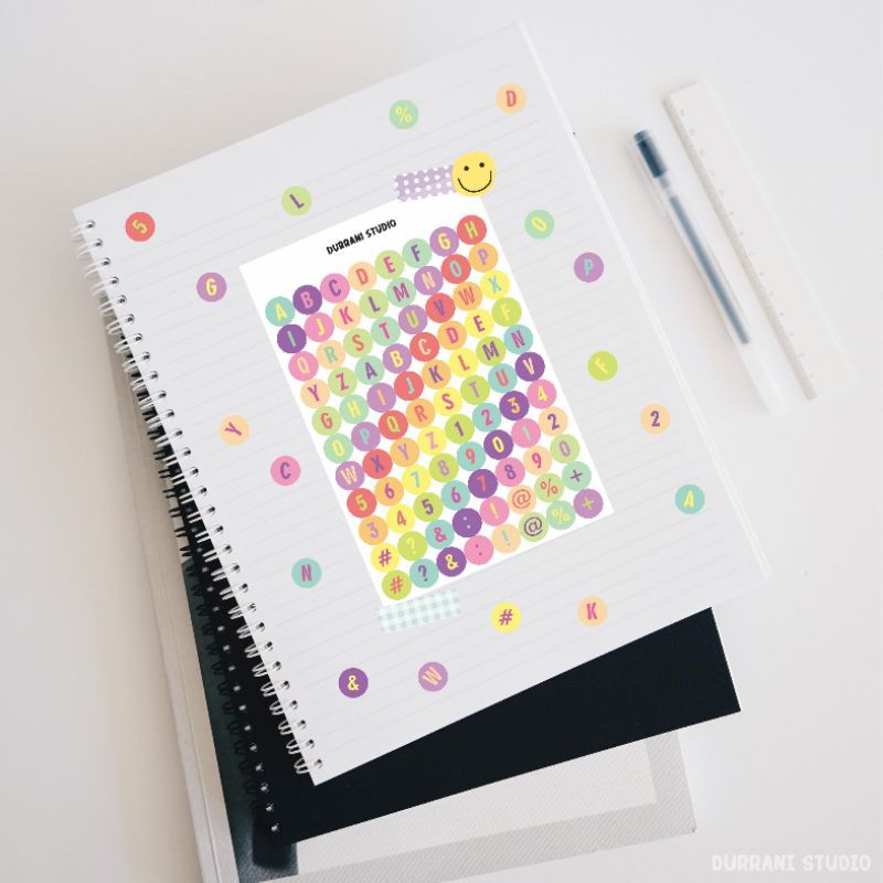Durrani Studio Deco Sticker Sheet Dots Alphabet Rainbow