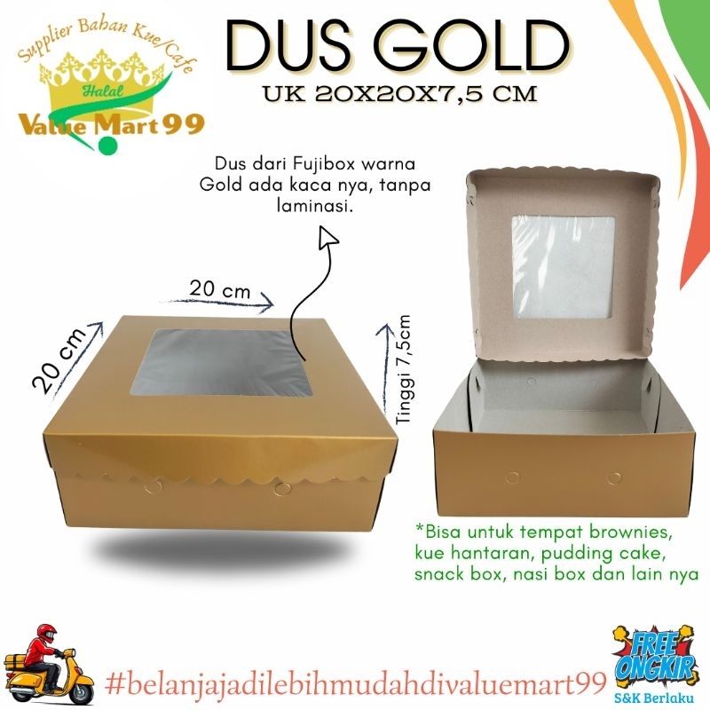 Jika Anda ingin membeli dus warna Gold ini, Anda dapat langsung datang ke toko Offline kami yang bernama Toko Bahan Kue Value mart 99. Anda dapat mencarinya di maps dengan mengetik "Toko Bahan Kue Value mart 99". Namun, jika Anda ingin membeli secara online, Anda dapat memesannya melalui toko online kami.