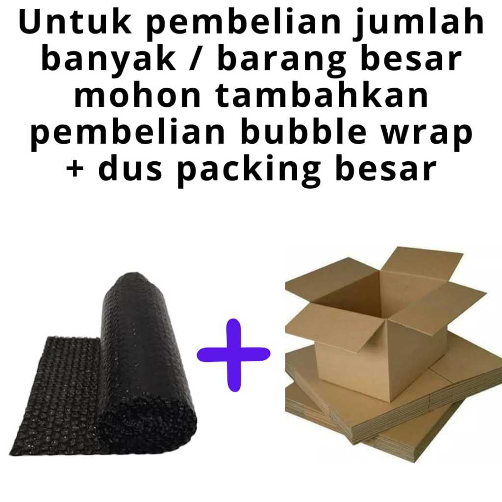 - JIKA PEMBELIAN JUMLAH BANYAK / BARANG BESAR TIDAK MENAMBAHKAN PEMBELIAN BUBBLE WRAP + DUS PACKING BESAR, ATAU HANYA MENAMBAHKAN PEMBELIAN DUS PACKING KECIL, KAMI HANYA AKAN MEMBERI BUBBLE WRAP SAJA.