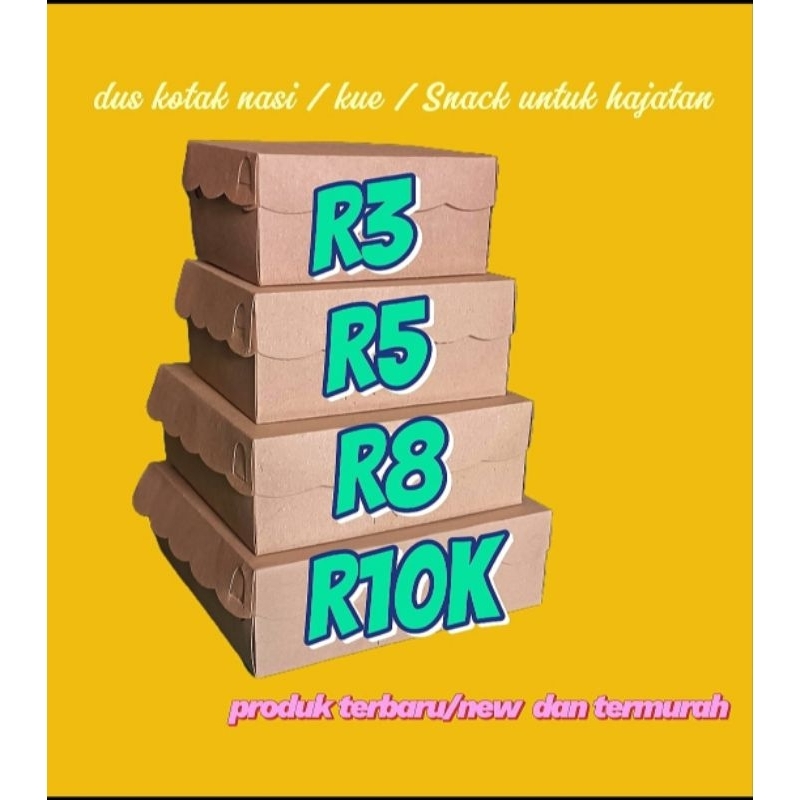 Dus kue / kotak nasi R5 16.5cm x 12.5cm x 7cm kraft (ketebalan 275gsm)