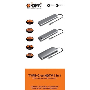 E Den Type-C to HDTV 7 in 1, Type-C, PD, 3 USB, TF & HDTV Port.
