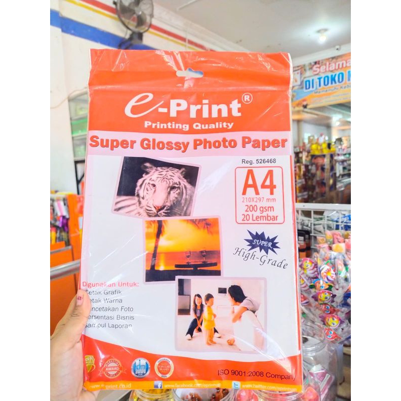 Salah satu produk paper e-Print yang dapat digunakan untuk mencetak dengan permukaan yang mengkilap.