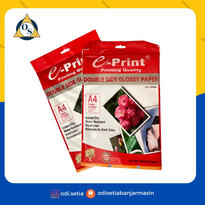 E-Print double side glossy paper A4 150gsm, 20 Lembar, 210 x 297mm, 5760 dpi