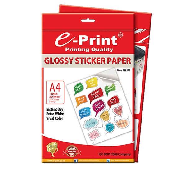 E-Print Glossy Sticker Paper A4 / Kertas Stiker Label Glossy A4