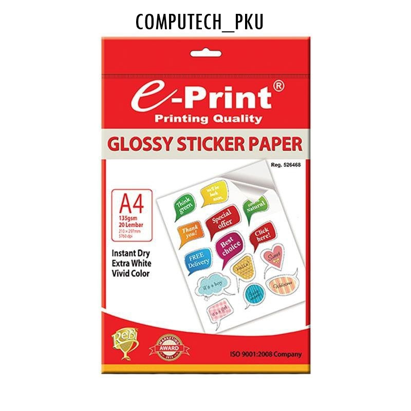 Glossy Sticker Paper e-Print A4 135gsm 20Lbr Original