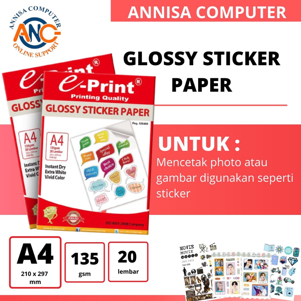 E-Print Glossy Sticker Paper A4 / Kertas Sticker Label Glossy