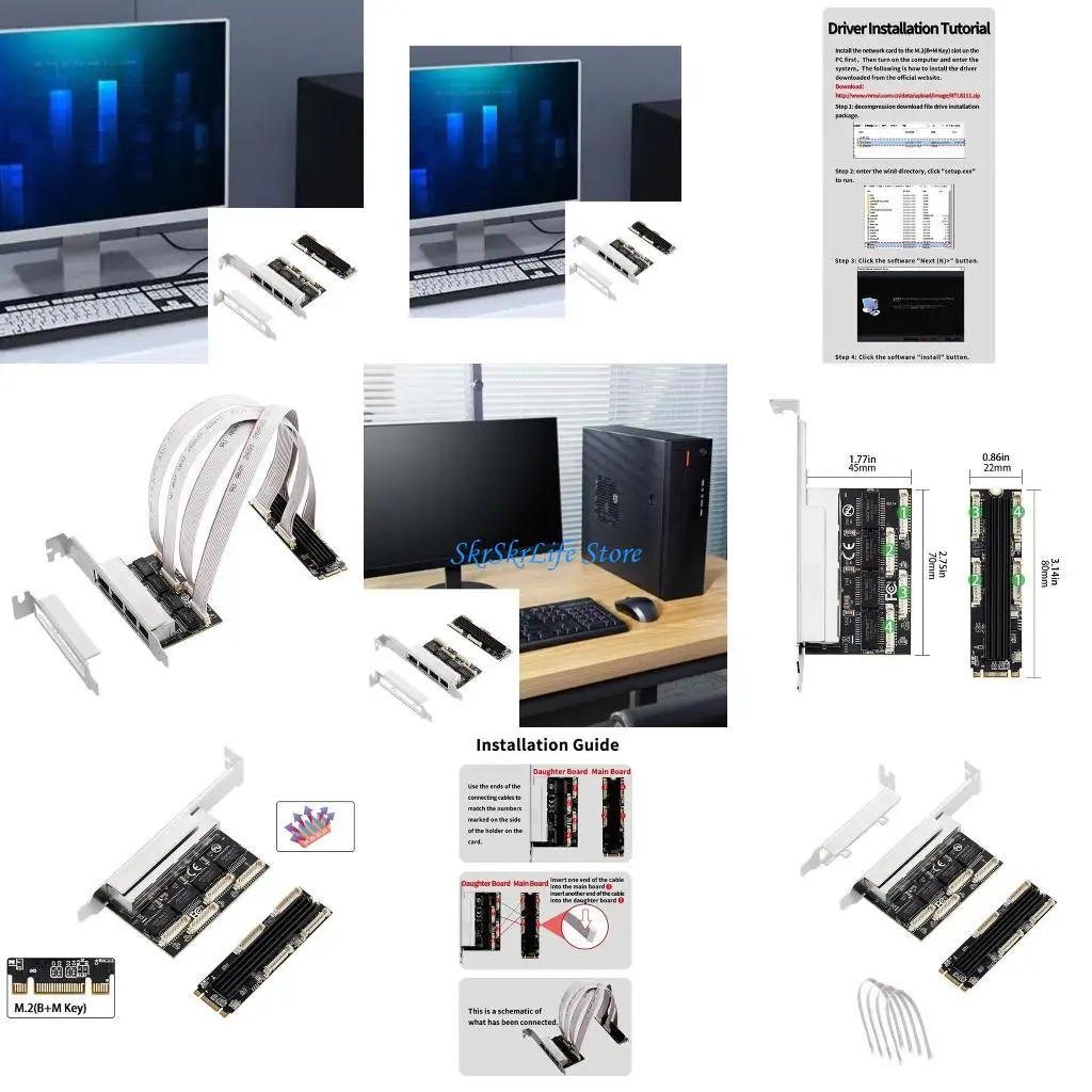 E65E Convenient Networks Expansion M.2 to 4 Port RJ45 Ethernet Networks Card