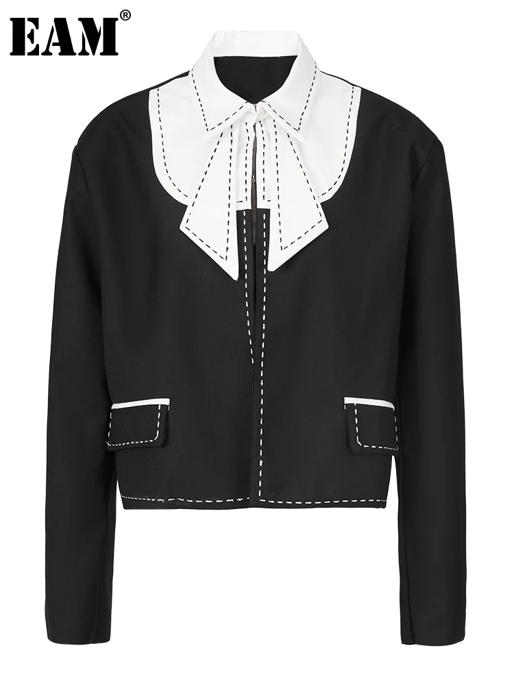 [EAM] черная Элегантная куртка большого размера с вышивкой, новая женская куртка с отворотом и длинным рукавом, модная весенне-осенняя 2023 1DF6403