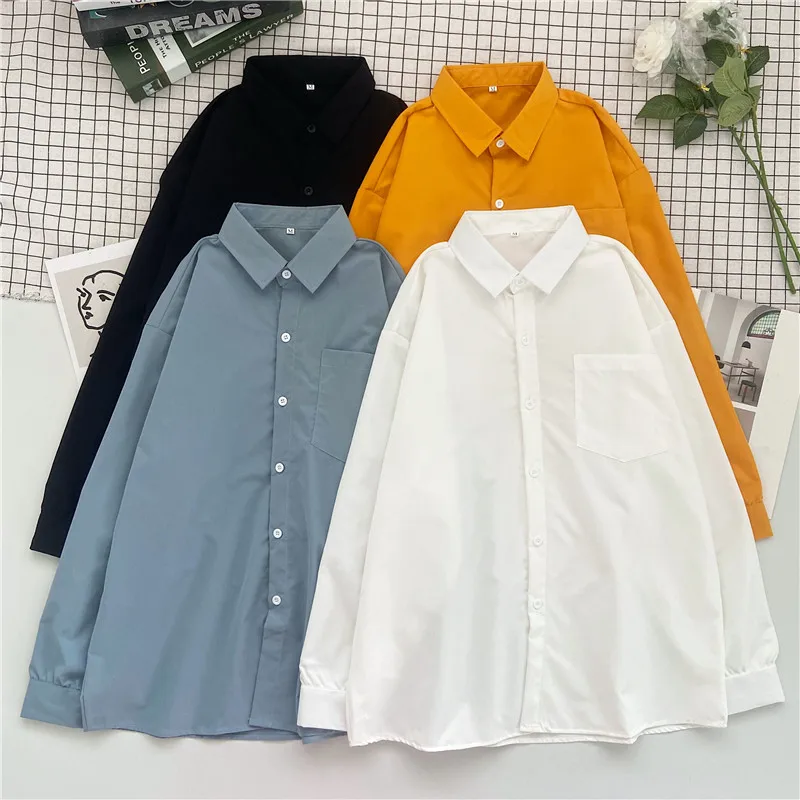 EBAIHUI Женские однотонные рубашки для мальчиков рубашка с длинным рукавом блузки женские топы Повседневная Базовая рубашка Блузки размера пл...