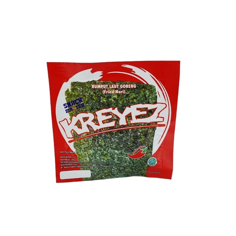 rumput laut kering panggang (nori) rasa pedas yang nikmat renyah & gurih.