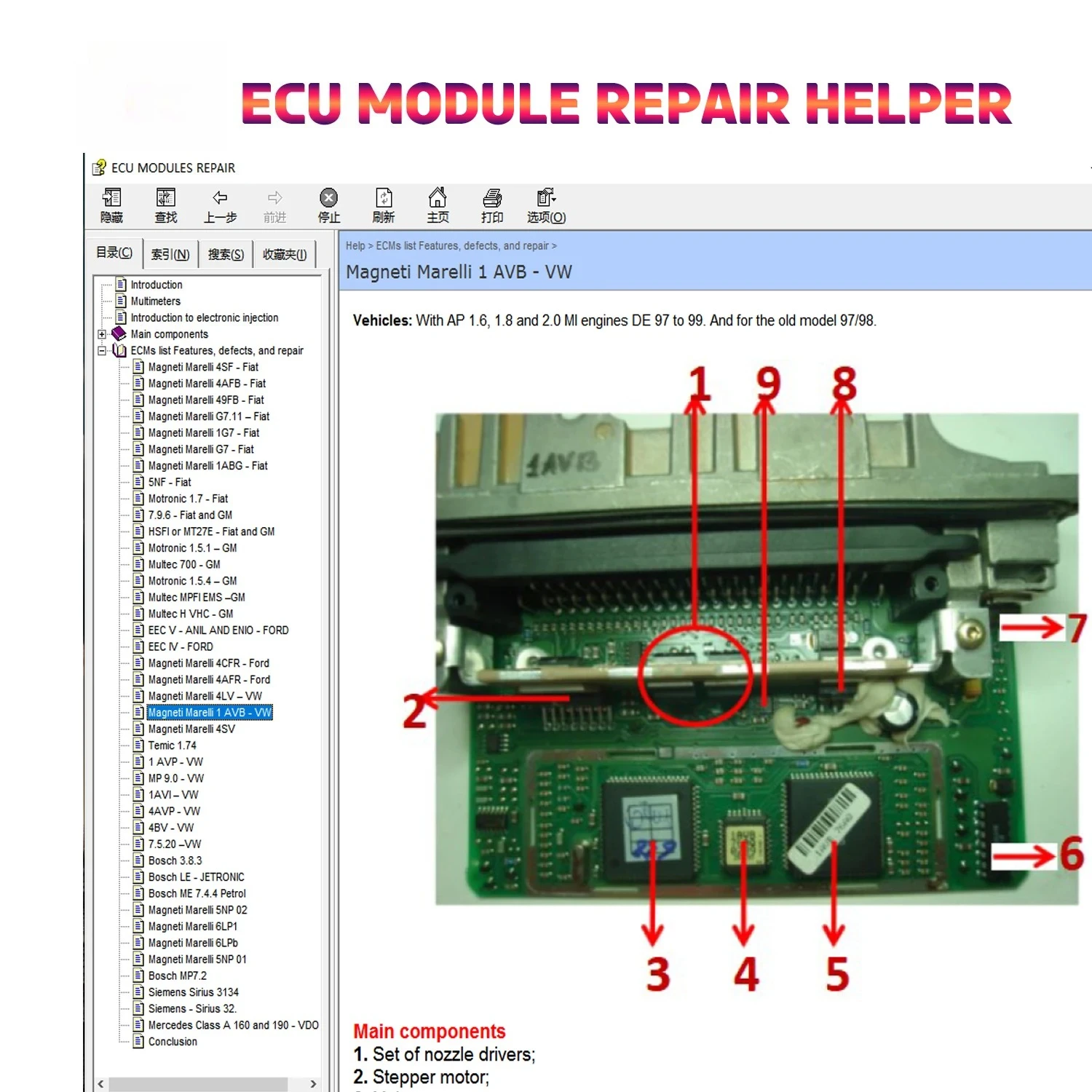 ECU MODULES Repair Helper E-Book ECU Repair Software ECUs Pinout Immo Location Including Multimeters Transistor EEprom Defects