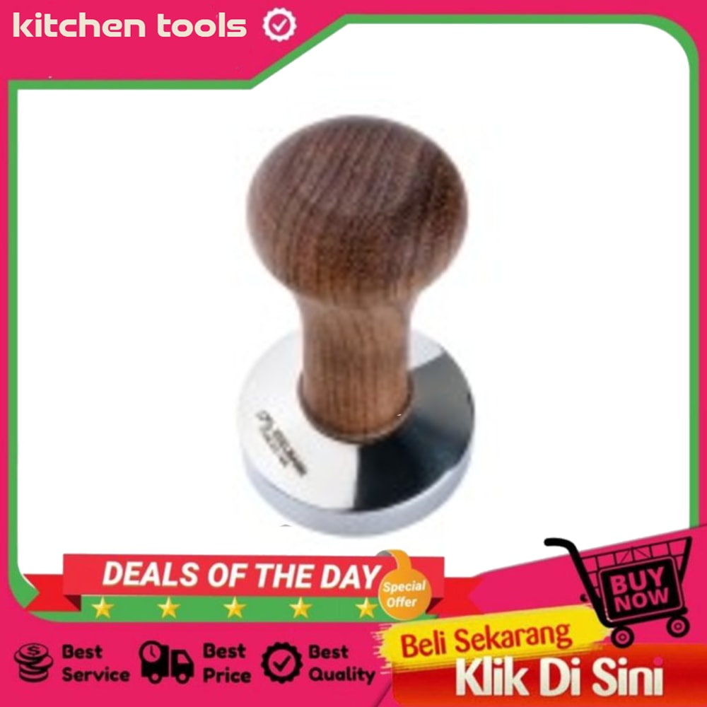 Tamper Profesional 58 mm stainless steel dgn gagang kayu rosewood yg elegan dan cantik membuat tamper anda begitu menarik dan mempesona.