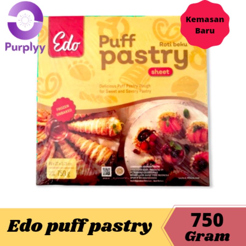 Edo Puff Pastry merupakan adonan beku Puff Pastry yang siap pakai, tidak menggunakan pengawet, praktis, dan halal. Edo Puff Pastry berbentuk lembaran ini berukuran 22cm x 87cm. Dapat dikreasikan sesuai kebutuhan, seperti membuat Pisang Bolen, Zuppa Soup, Cheese Stick, Palmier, dsb. Puff Pastry termasuk salah satu jenis pastry favorit yang berasal dari Perancis, memiliki tekstur yang renyah ketika dimakan.