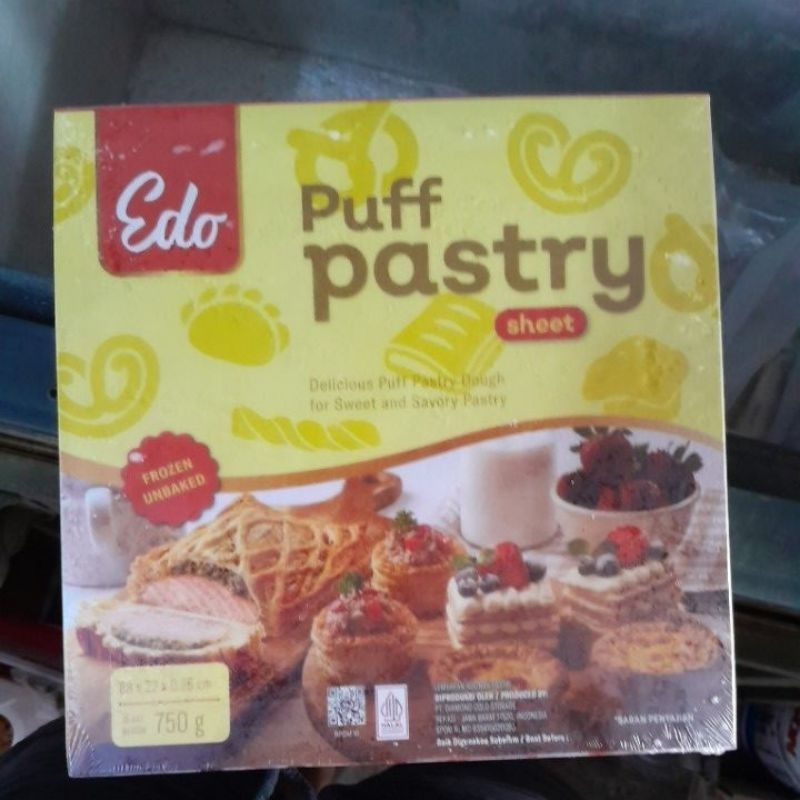 Edo Puff Pastry 750 gr, per box Isi 1 lembar panjang 22x88cm.