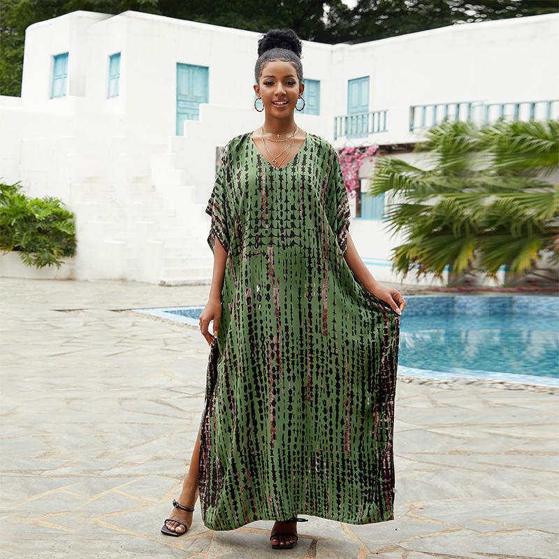 EDOLYNSA женское богемное пляжное платье больших размеров, полосатая туника с v-образным вырезом, платье-кафтан с принтом тай-дай, легкая повседневная одежда для дома Q1218 One Size зелёный