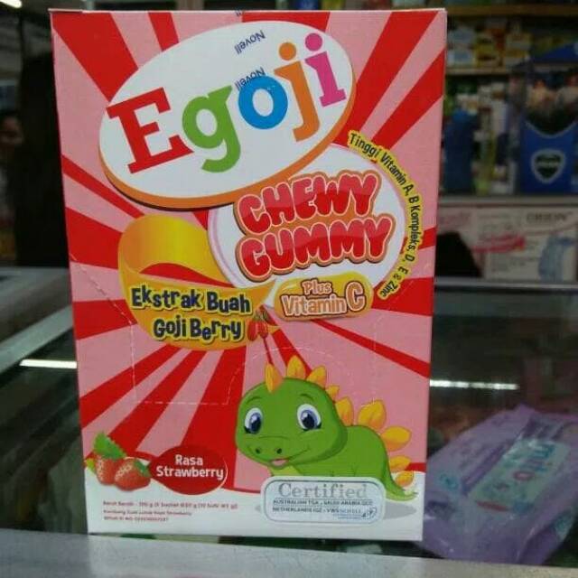 Egoji Gummy Rasa Strawberry adalah produk multivitamin untuk anak-anak dalam bentuk gummy dino yg lucu dengan rasa strawberry yg enak.