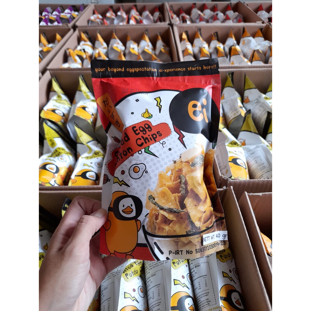 Ini buatan lokal ya! Keripik crunchy super lezat dengan taburan resep rahasia Ei Salted Egg. Dengan Telur asin asli ya, bukan cuma bumbu tabur biasa. Jadi asli berasa banget bumbunya!