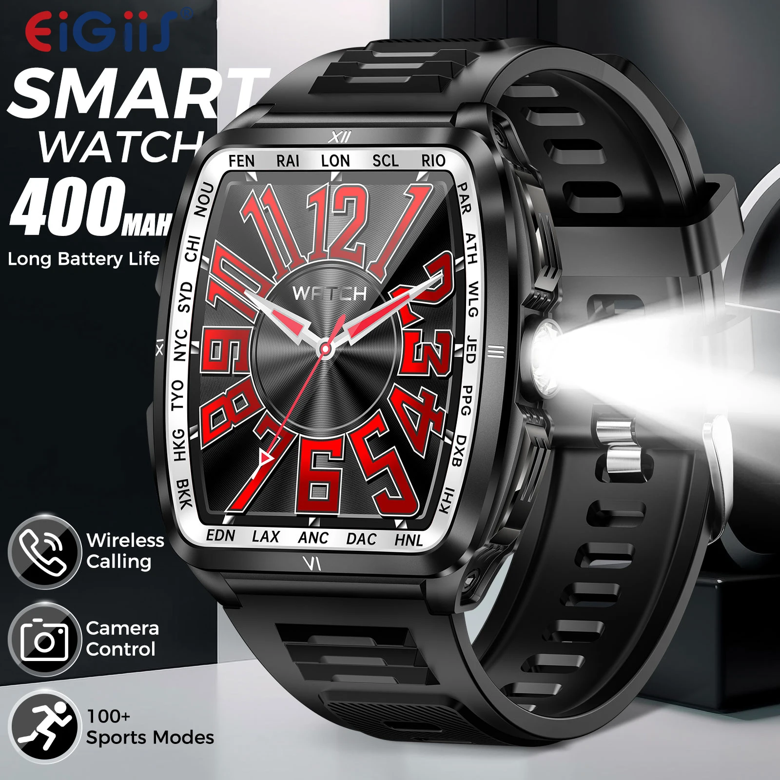 EIGIIS KE7 Smart Watch for Men with LED Flashlight 5ATM Waterproof with HR/SPO2/Sleep Monitor and 100+ Sports Modes SmartWatches