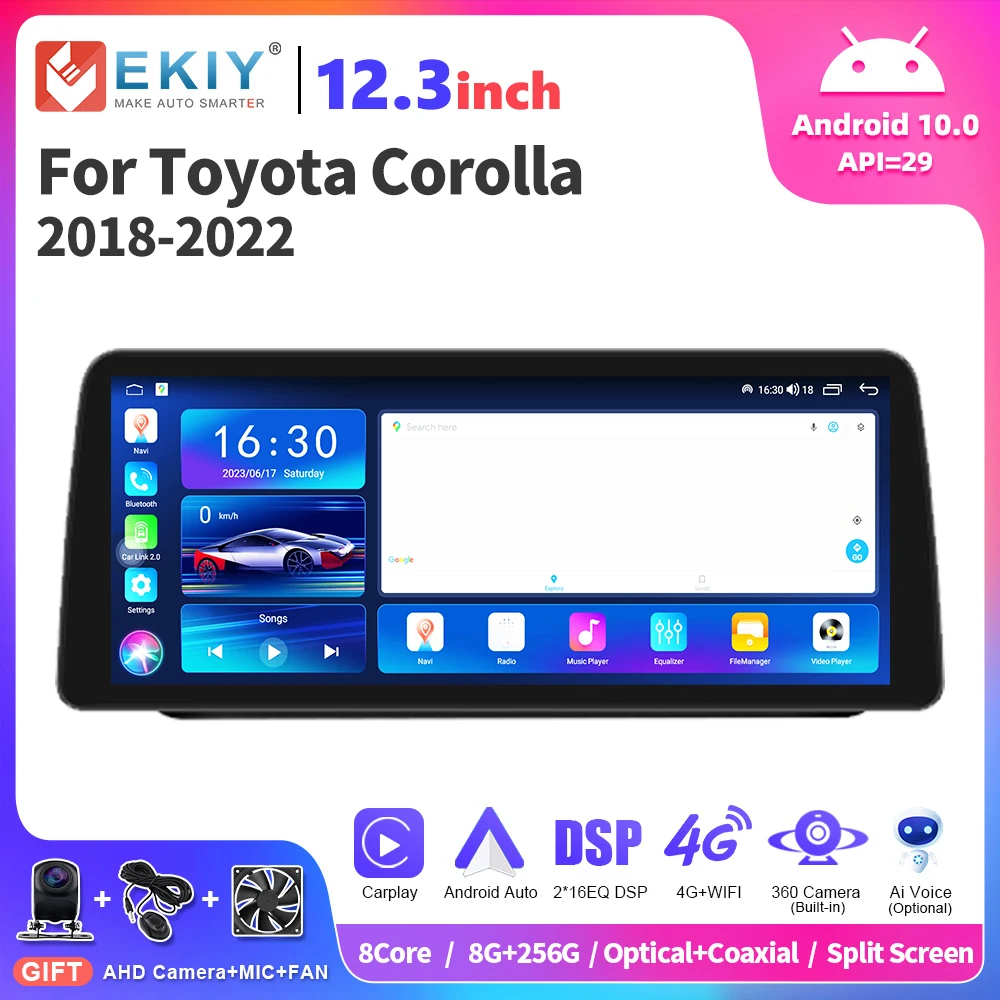EKIY 12,3 дюймовый Android автомобильный стерео для Toyota Corolla 2018 - 2022 мультимедийный плеер авторадио Carplay GPS Navi 4G Wifi головное устройство