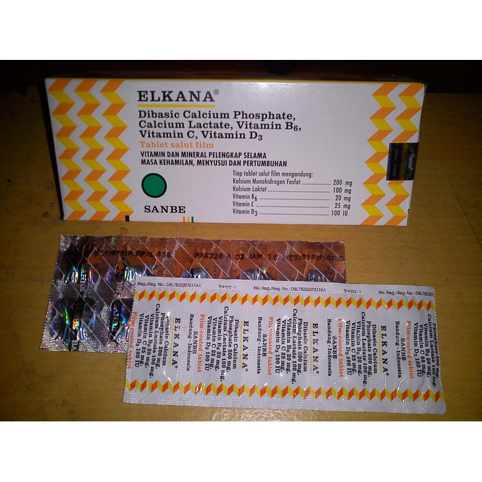 Komposisi: Dibasic Ca phosphate 200 mg, Ca lactate 100 mg, vitamin B6 20 mg, vitamin C 25 mg, vitamin D3 100 iu