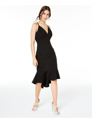 EMERALD SUNDAE Женское Черное Коктейльное Платье Ниже Колена Русалка Юниоры, Черный