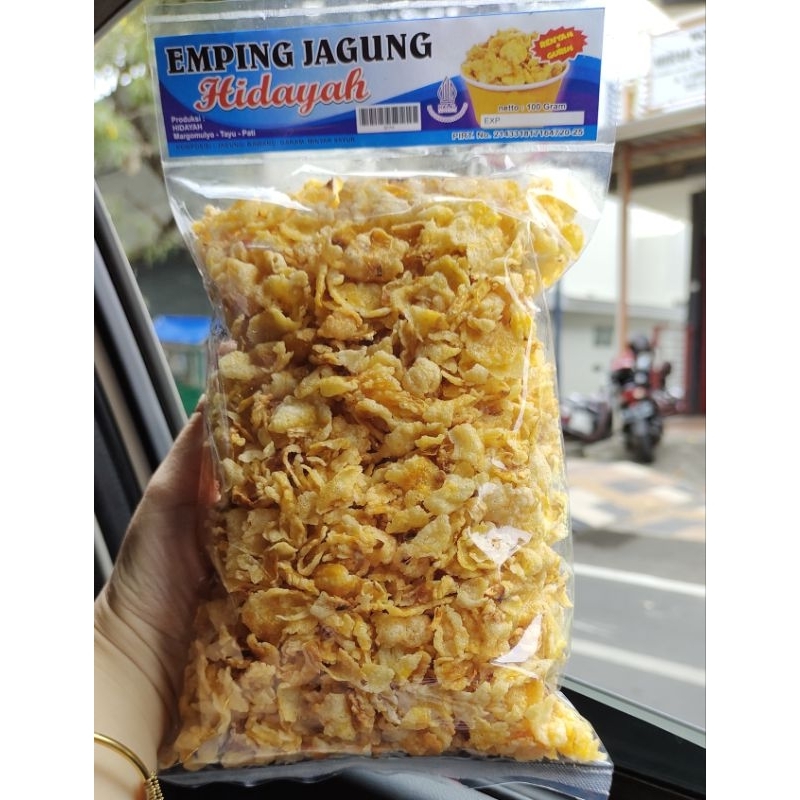 Emping jagung kriuk renyah rasa gurih khas Pati berat 100 gram, exp masih lama stok selalu baru.