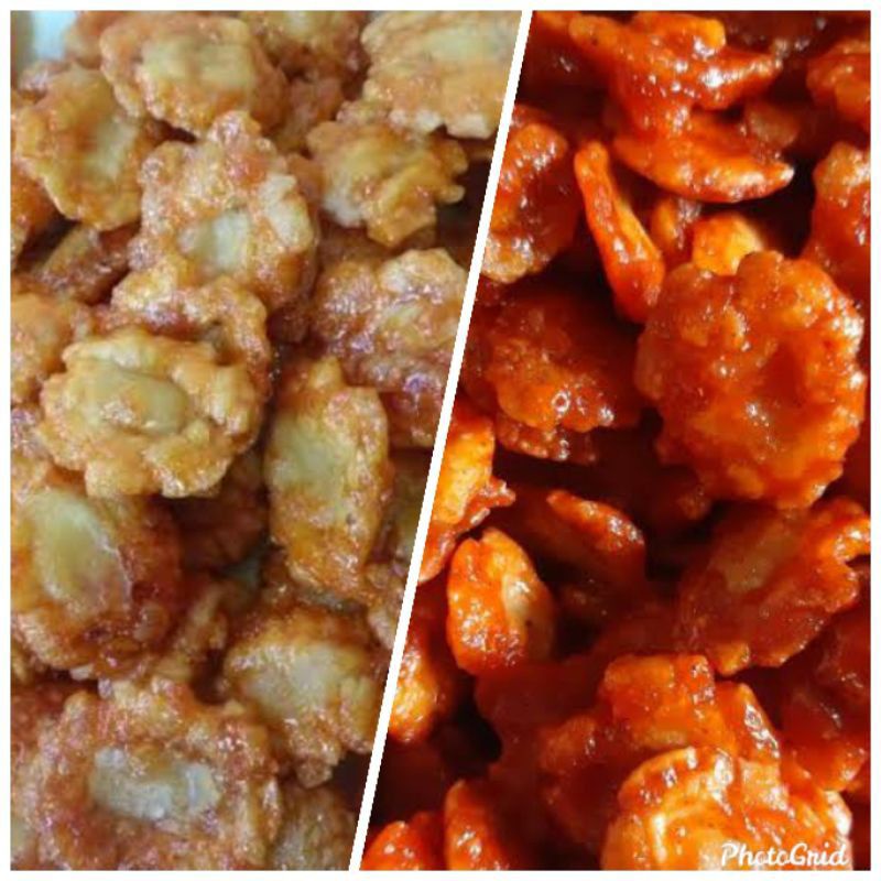 Emping melinjo pedas manis ini bumbunya gak lengket dan warna merahnya cantik
