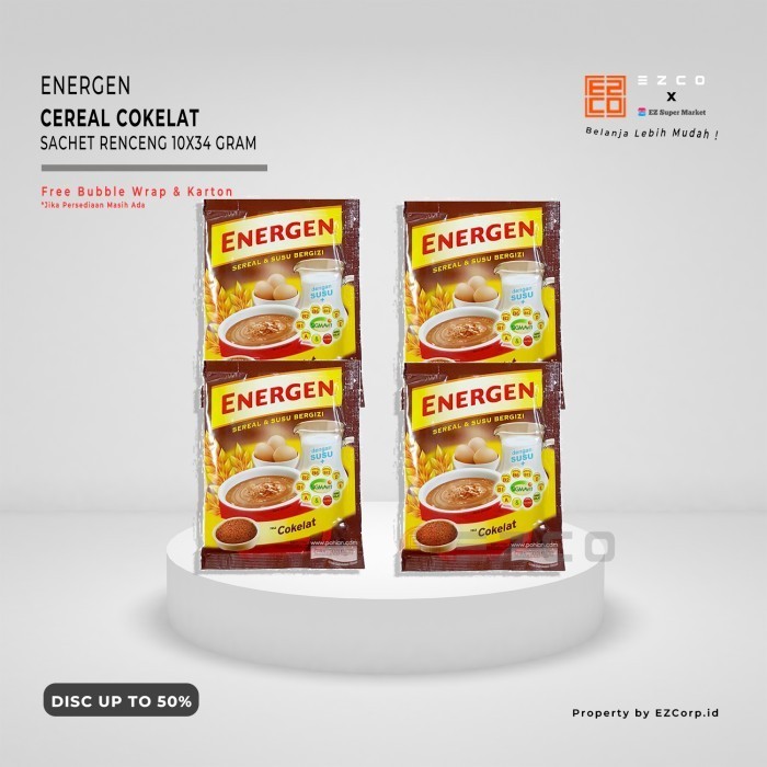* ENERGEN CEREAL RASA COKELAT KEMASAN SACHET RENCENG 10 PCS X 34 GR