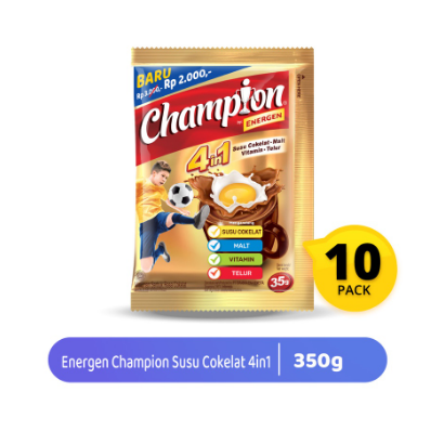 Energen Champion, solusi sarapan praktis dan bergizi yang menawarkan nutrisi dan energi lengkap (susu, malt, vitamin dan telur). Cocok temani setiap pagi harimu.