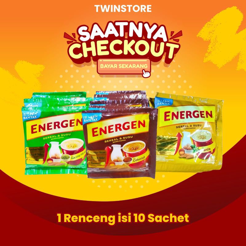Energen, merupakan sereal sehat dengan kandungan gizi yang bermanfaat untuk tubuh dan cocok untuk dikonsumsi setiap hari. Memiliki 5 varian rasa yaitu vanilla, cokelat, jagung, kacang hijau, dan jahe buat kamu bisa buat menu sarapan yang berbeda setiap harinya.